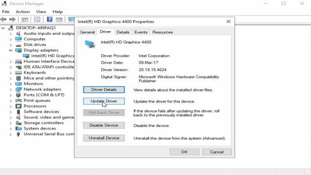 ثم انقر بزر الماوس الأيمن على Intel(R) HD Graphics 4400 واختر Properties.