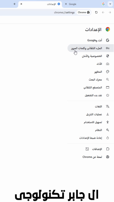 ثم انقر فوق الملء التلقائي وكلمات المرور.