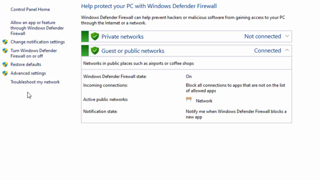 انتقل إلى Control Panel ثم انقر فوق Windows Defender Firewall.